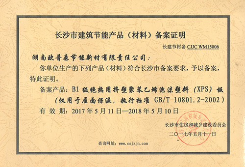 長沙屋面保溫備案證20180510